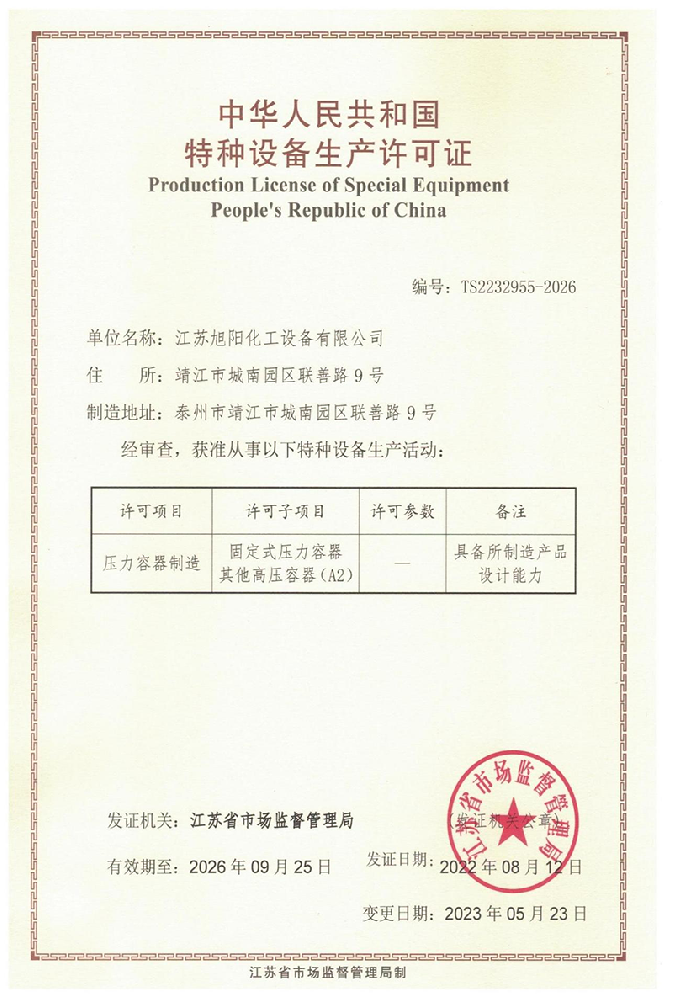 公司位于靖江經(jīng)濟技術(shù)開發(fā)區(qū)城南園區(qū),地理區(qū)位優(yōu)越、交通便利,在全體員工的銳意講取和奮力拼搏下,江蘇旭陽化工設(shè)備近年發(fā)展強勁,規(guī)模迅速擴大。